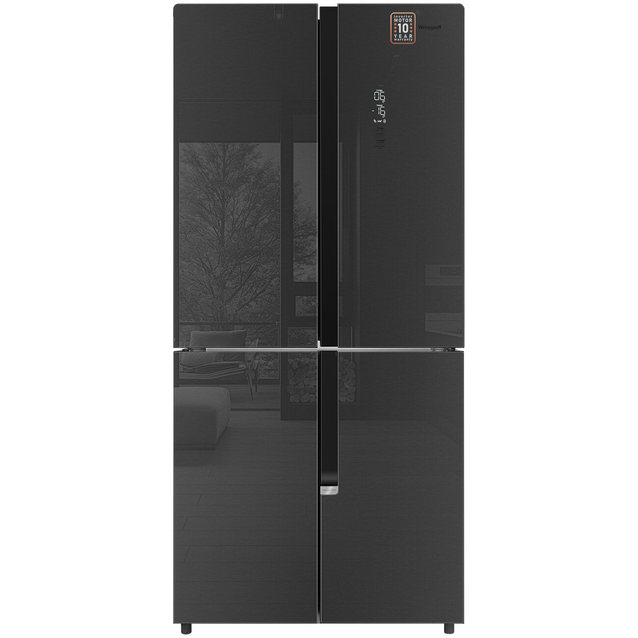 Трехкамерный холодильник Weissgauff WCD 450 Bru Steel Glass NoFrost Inverter