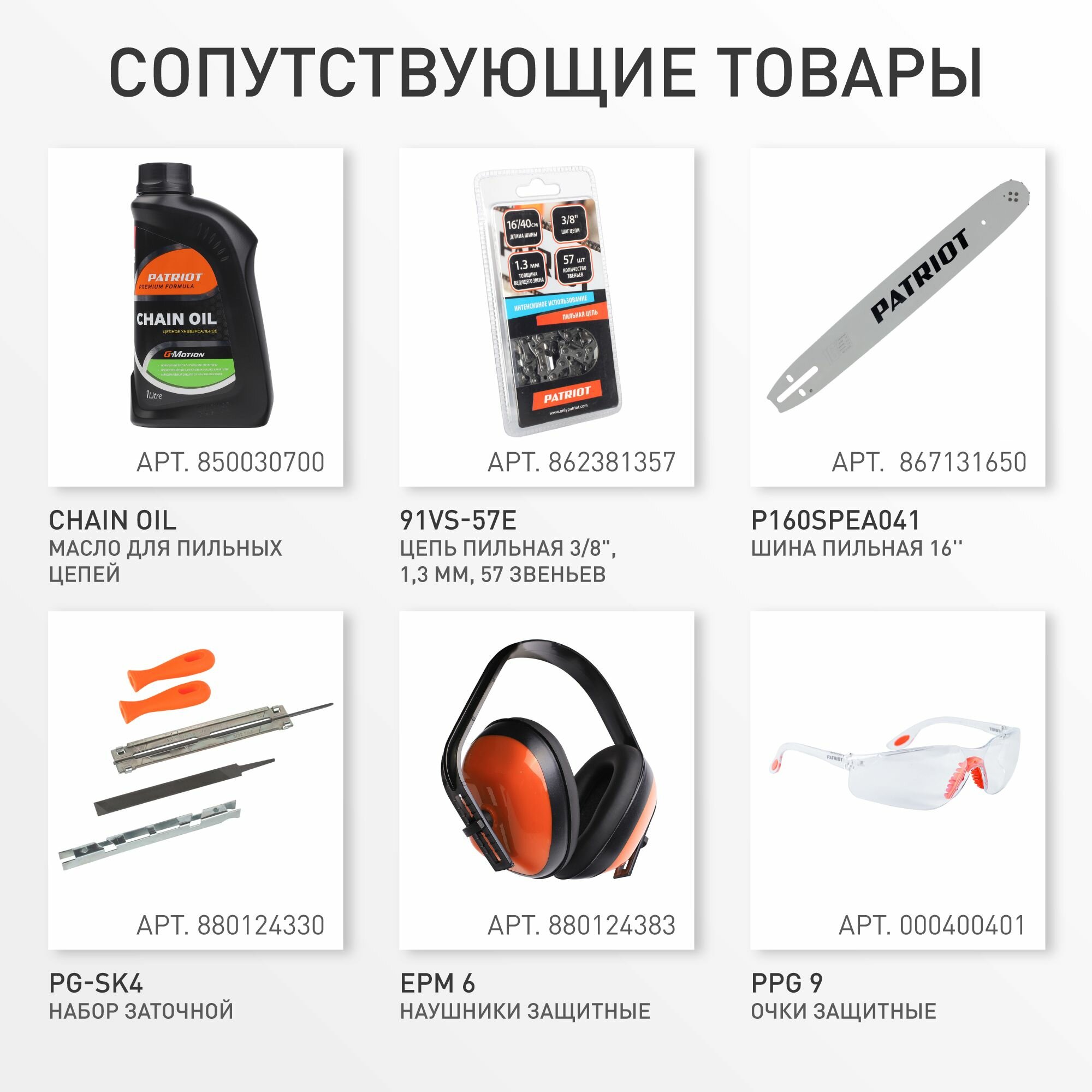 Электропила PATRIOT ES2016 220301510 2000 Вт, продольное расположение двигателя, шина Oregon 16