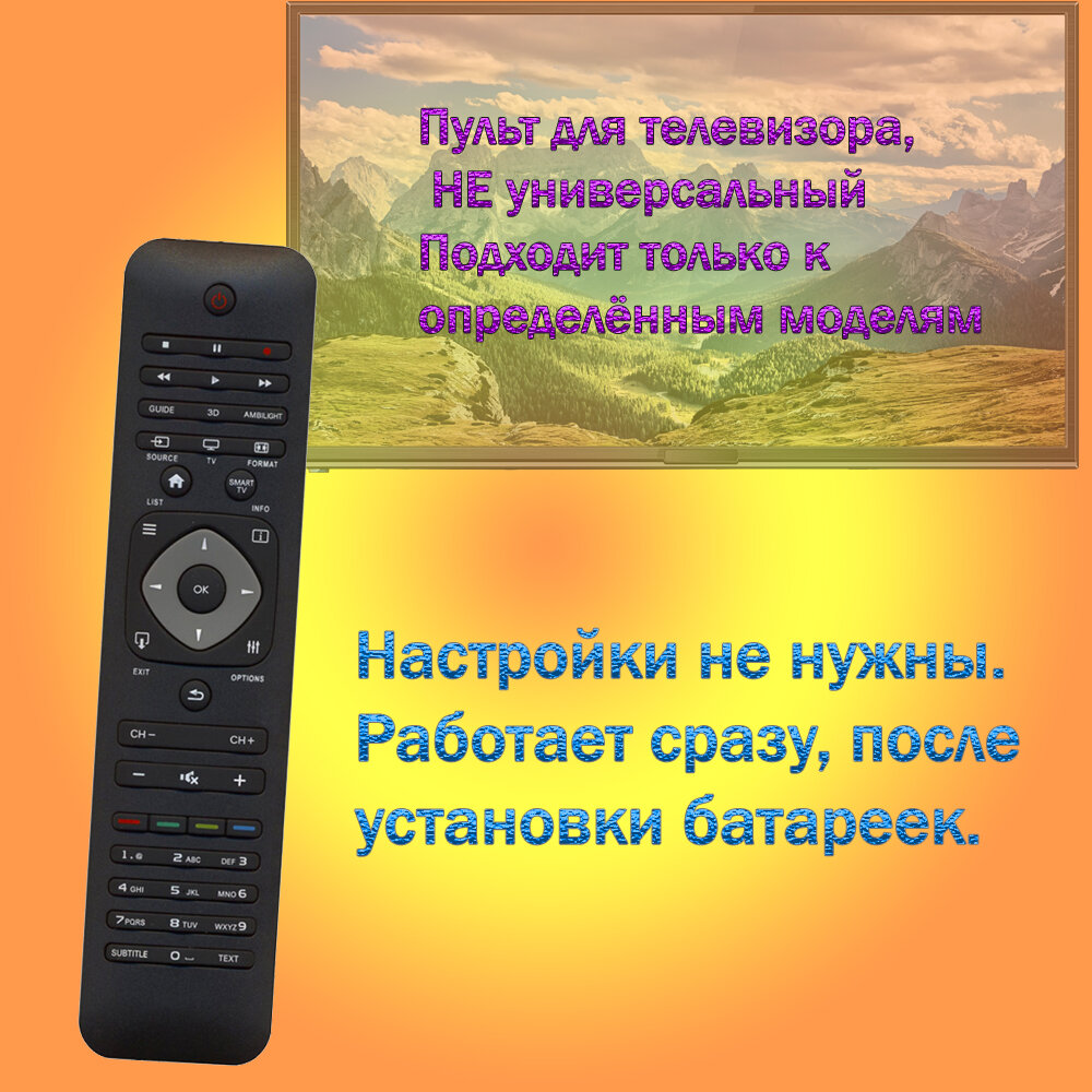 Пульт для телевизора Philips 42PFL6097T/60, ИК - интерфейс, настройки не нужны интересное: