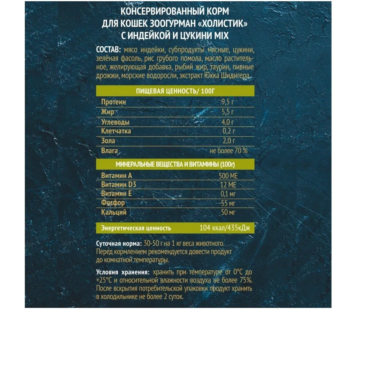 Зоогурман Консервы для кошек Holistic с индейкой и цукини MIX 6920 0,1 кг 42220 (2 шт)