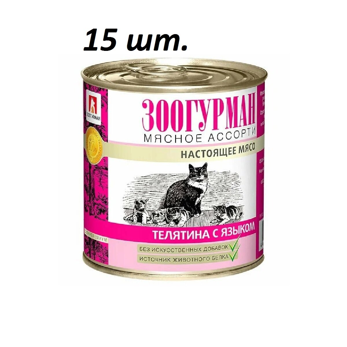 Зоогурман для кошек Мясное ассорти Телятина с языком, консервы 250г (15 банок)