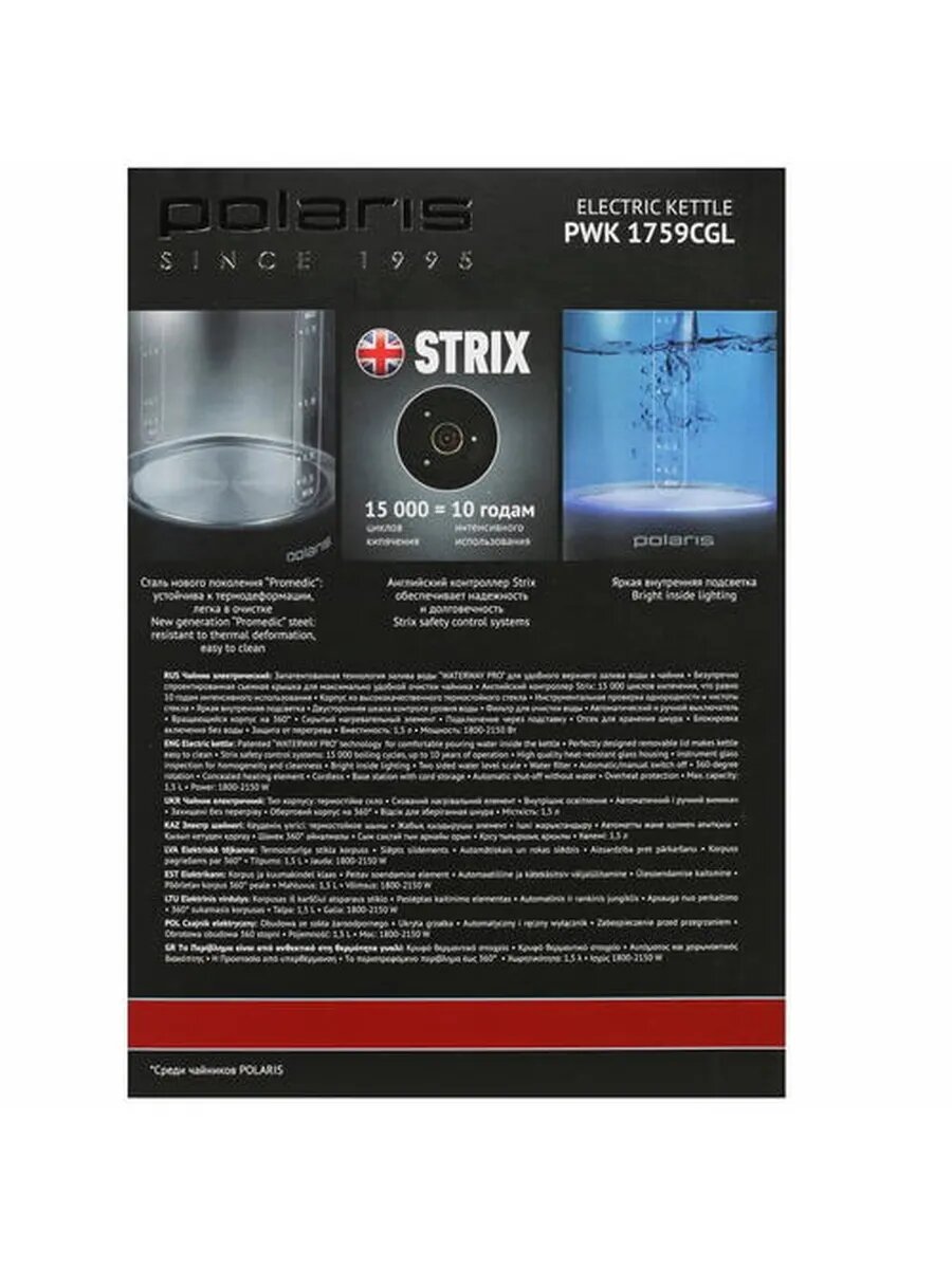 Чайник Polaris PWK 1759CGL Black, 1.5 л