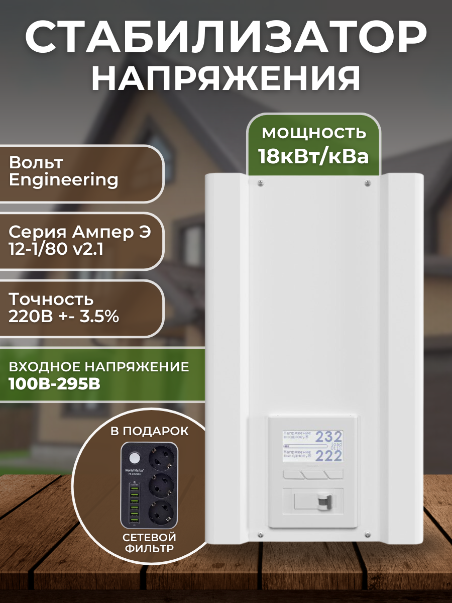 Стабилизатор напряжения Вольт Engineering Ампер Э 12-1/80 v2.1 18000ВА Однофазная сеть интересное: