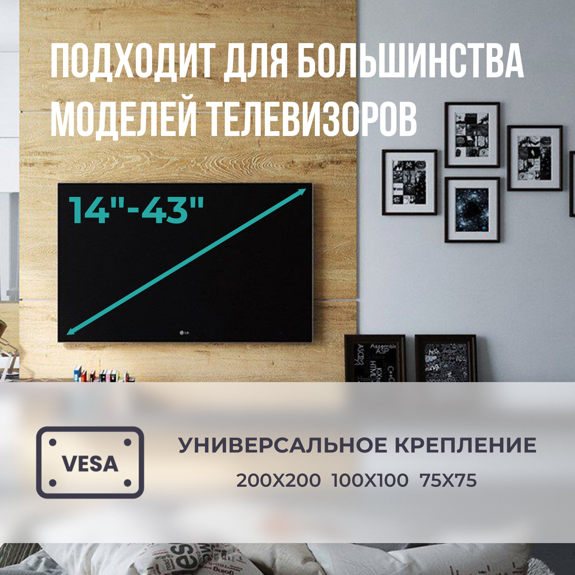 Кронштейн для телевизора 14"-43" 25кг фиксированный