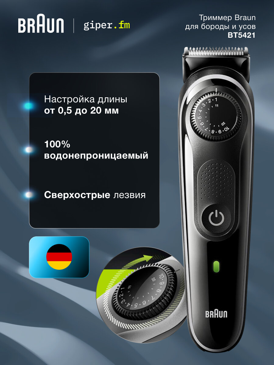 Купить Триммер мужской аккумуляторный Braun BT5421 для бороды и усов, водонепроницаемый, лезвия из нержавеющей стали