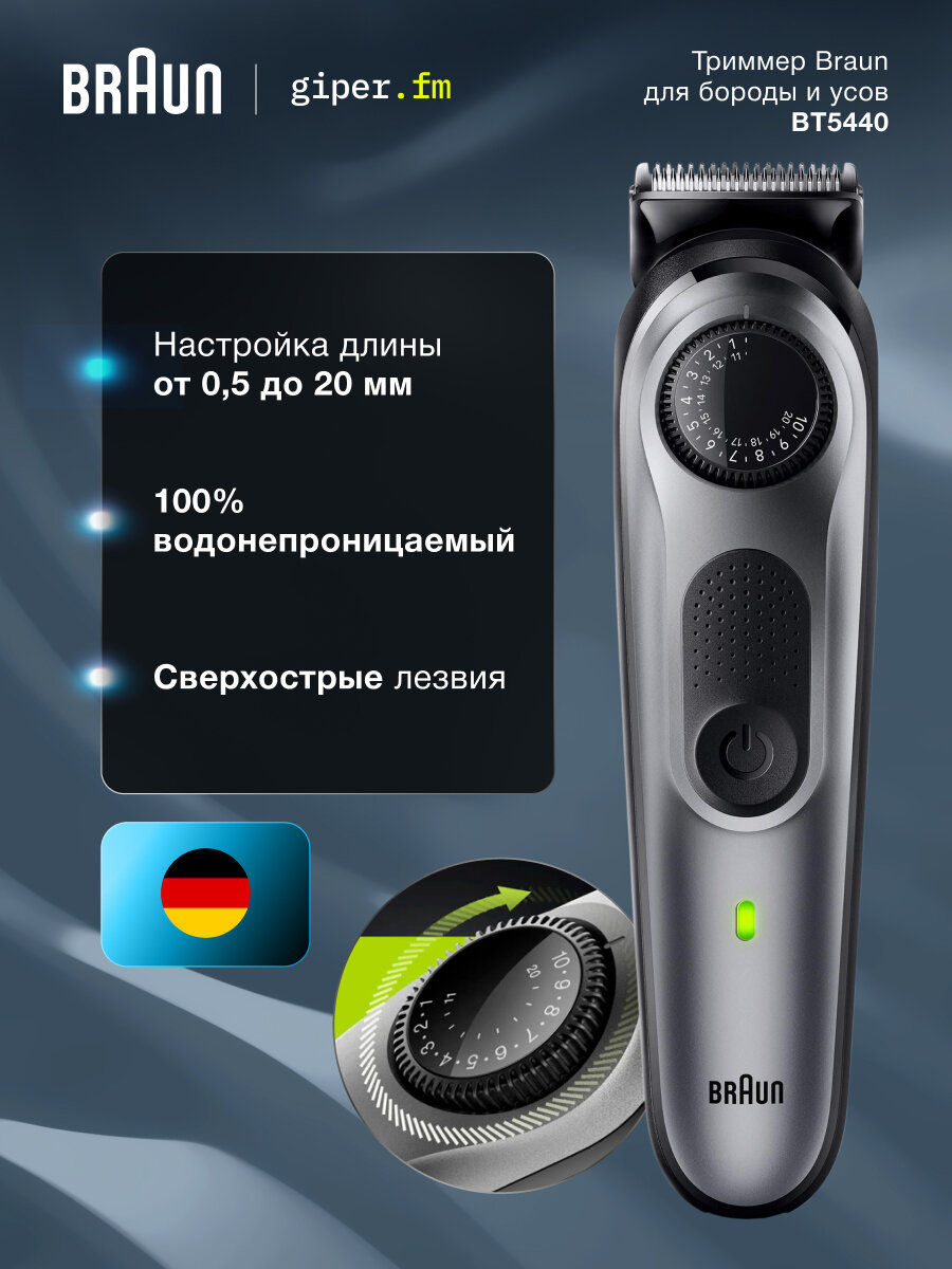 Купить Триммер мужской аккумуляторный Braun BT5440 BLK для бороды и усов, с точным колесом регулировки, водонепроницаемый