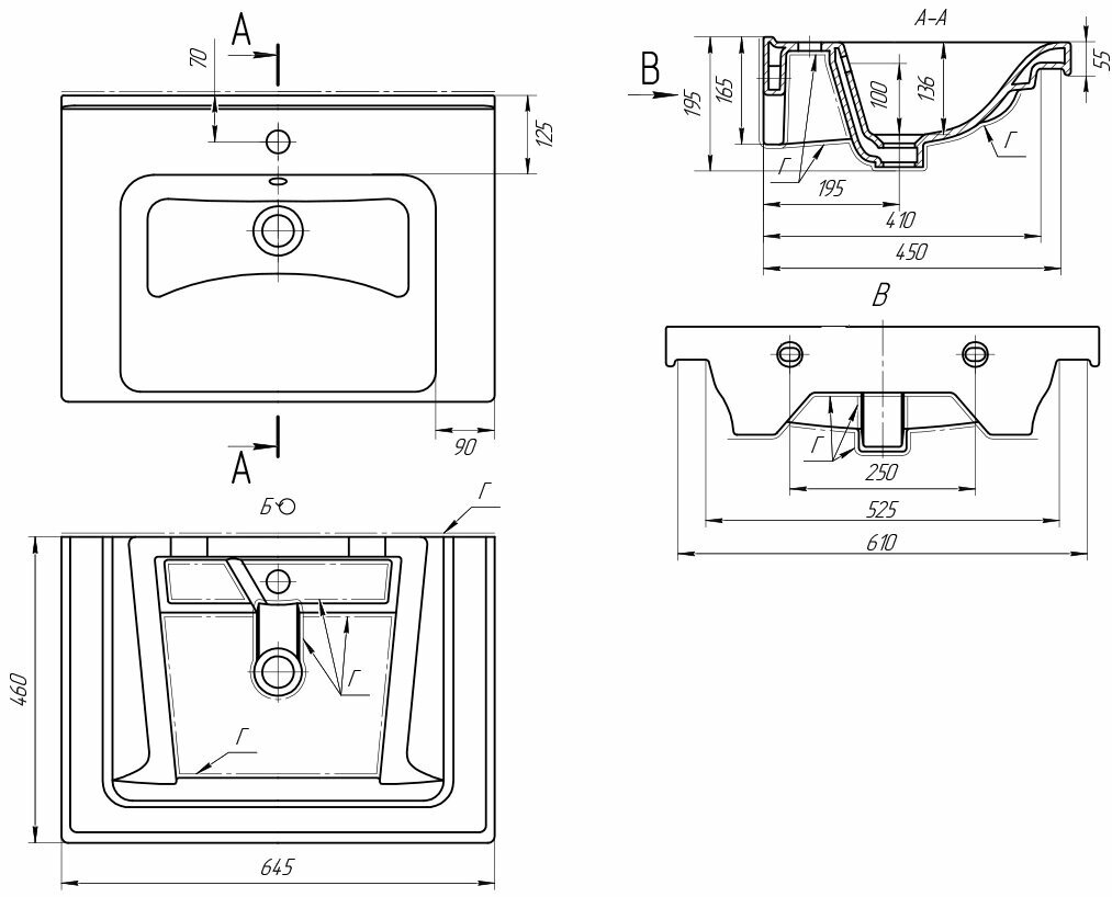 Умывальник мебельный Dreja Harmony 65, 640214, керамический