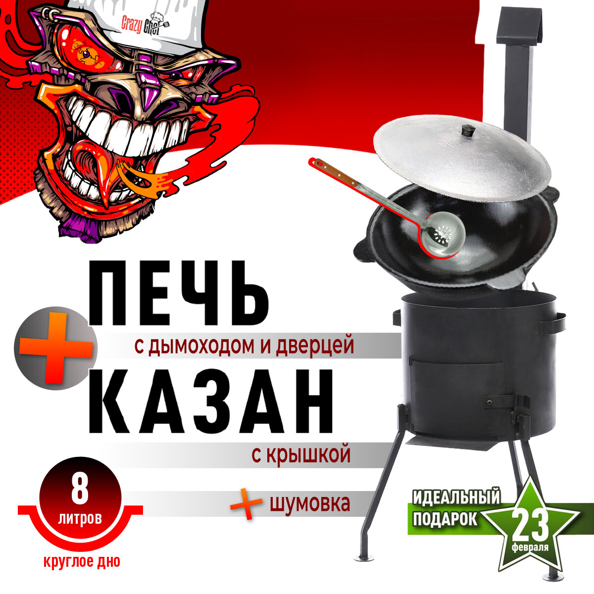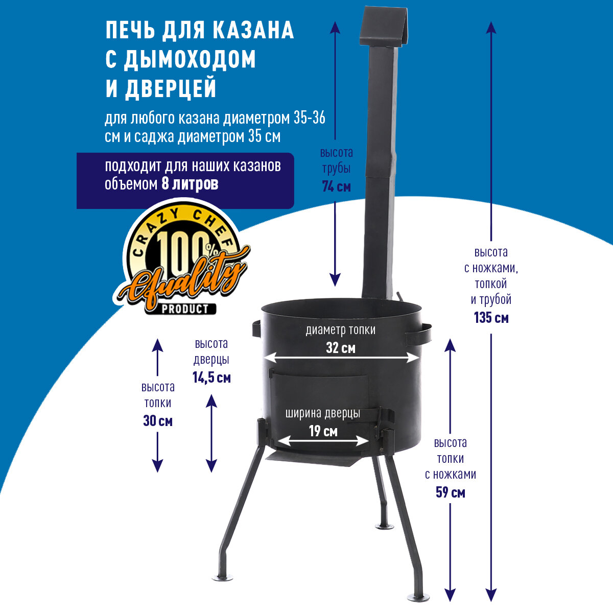 Казан чугунный 8 литров в комплекте с печью с трубой и дверцей интересное: