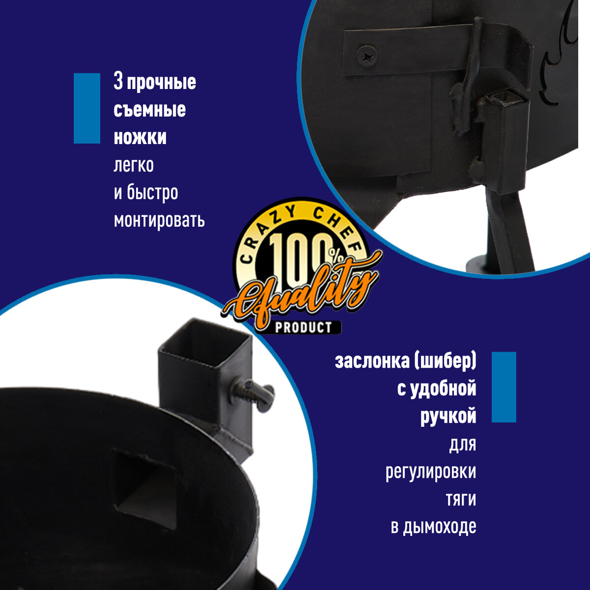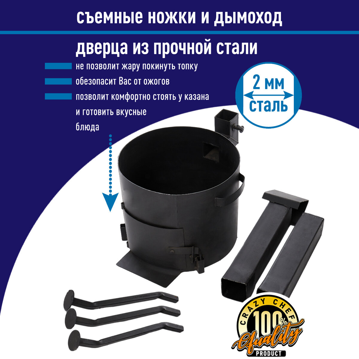 Печь для казана объемом 10 литров с ручками, съемные ножки, зольник