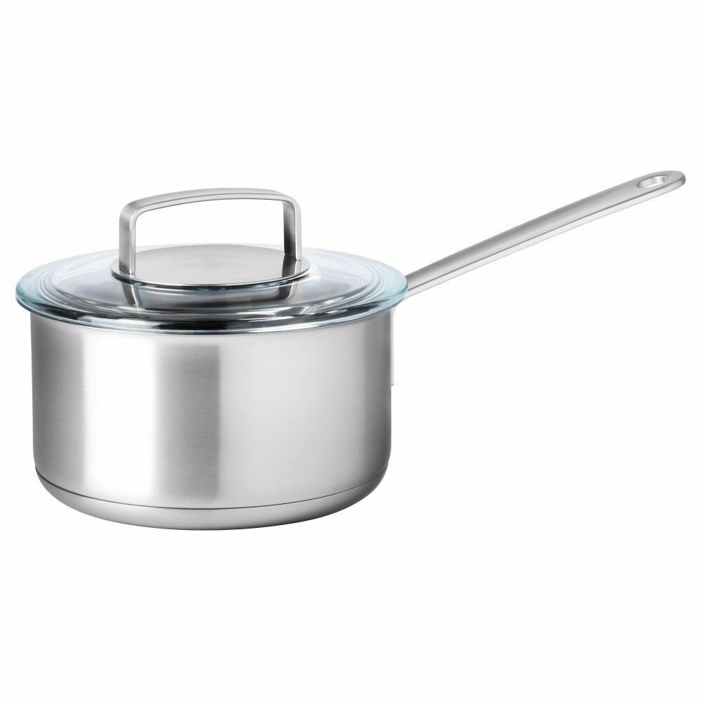 Ковш из нержавеющей стали с крышкой из стекла икеа 365+ 2 литра