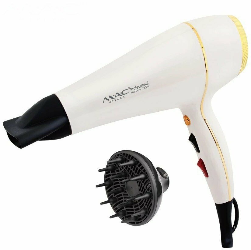 Купить Профессиональный ионный фен для волос бежевый с 2-мя насадками : диффузором и насадкой-концентротором