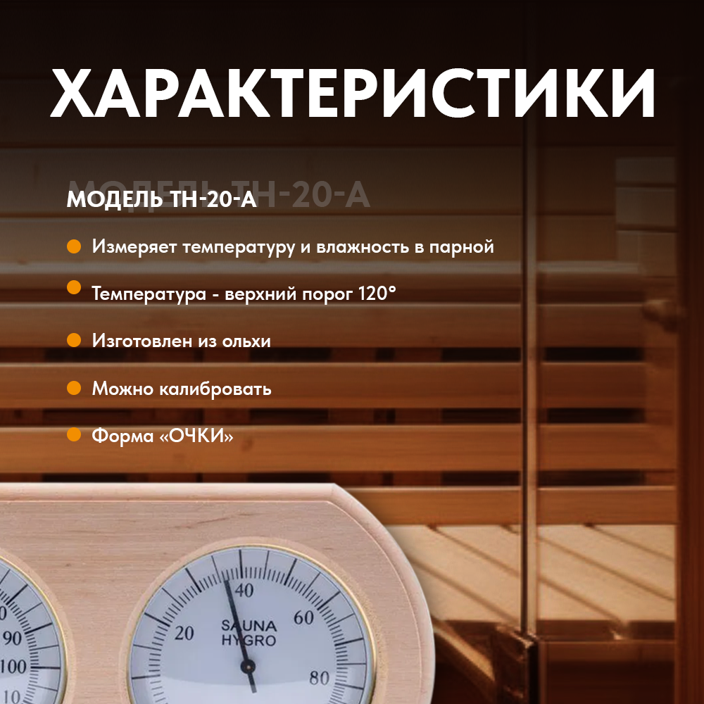 Купить Термогигрометр для бани и сауны, ТН-20-A, ольха, от 0°С до +120°С