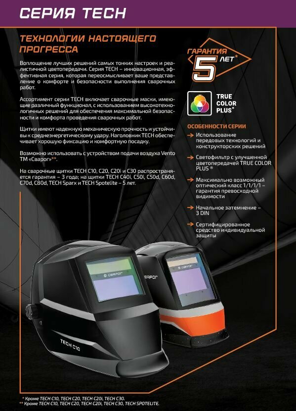 Маска сварочная защитная лицевая (маска сварщика хамелеон ) TECH C40i интересное:
