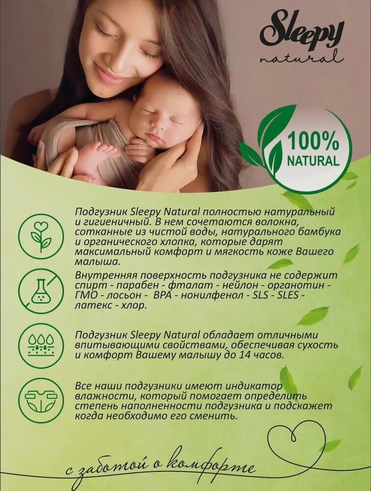 ЭКО Подгузники 2 размер (3-6 кг) натуральное волокно, Sleepy Natural, 84 шт
