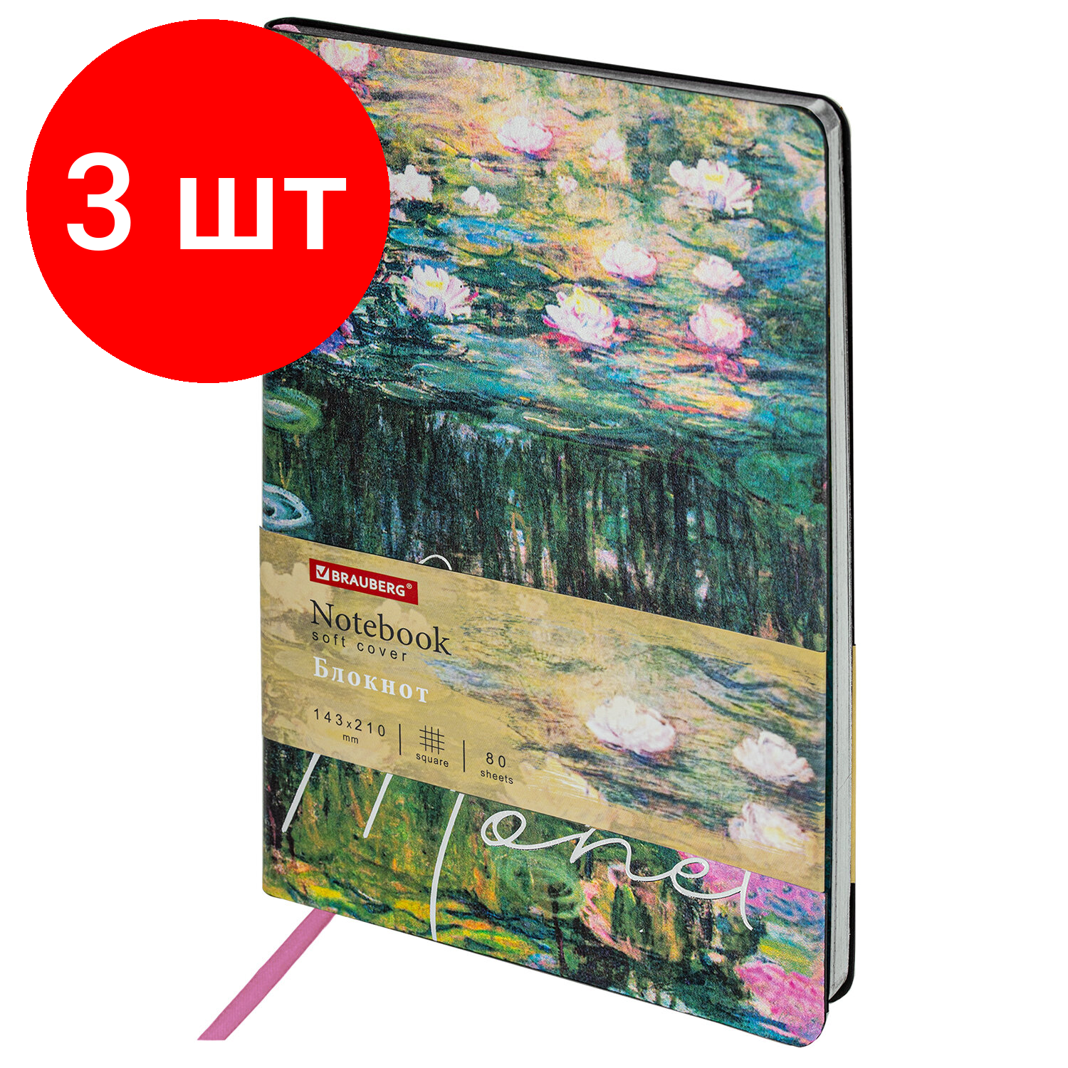 СохранитьКомплект 3 шт, Блокнот А5 (143x210 мм), BRAUBERG VISTA "Claude Monet", под кожу, гибкий, срез фольга, 80 л, 112058 интересное: