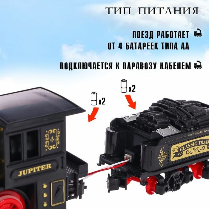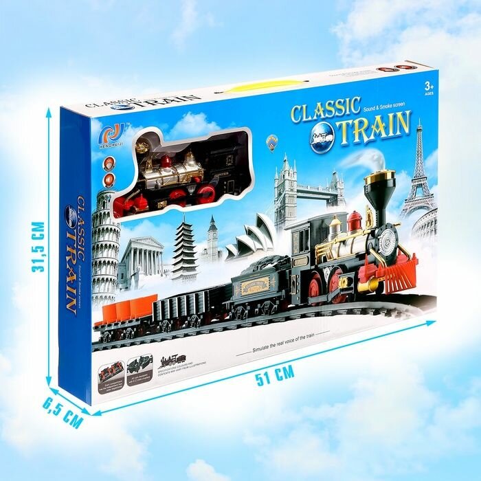СохранитьЖелезная дорога "Классический грузовой поезд", с дымовыми эффектами, протяженность пути 270 см. интересное: