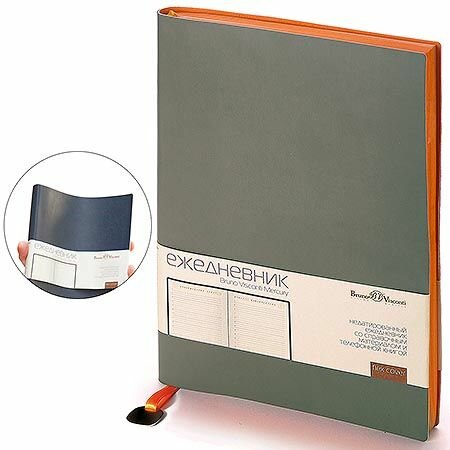 Купить Ежедневник недатированный А5+ искусственная кожа « Bruno Visconti » 136л Mercury Серый, линия, белый офсет 70г/м2, печать в 2 краски, ляссе, скруглен