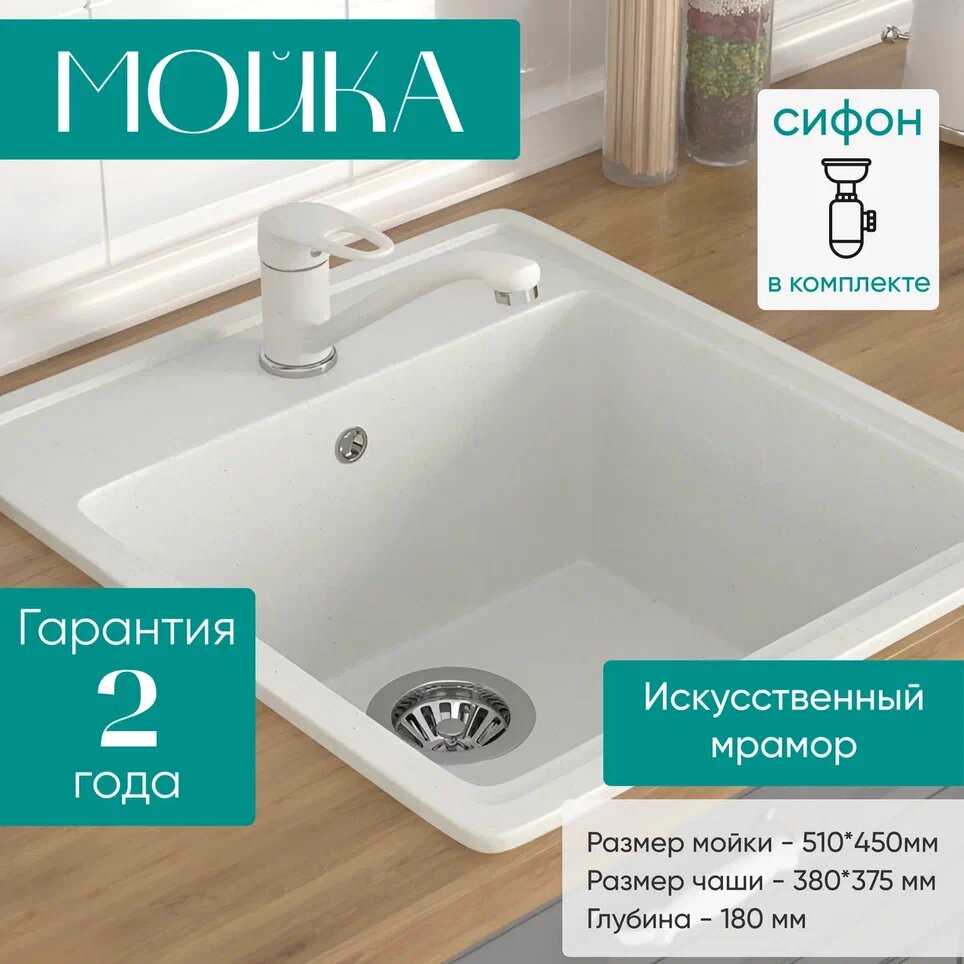 Врезная кухонная мойка Gamma Stone GS-1-31 белый