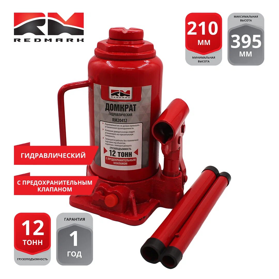 Домкрат Гидравлический "Redmark" 12 Т. (Выс. Подъема 210-395 Мм) С Перепускным Клапаном REDMARK арт. RM20412