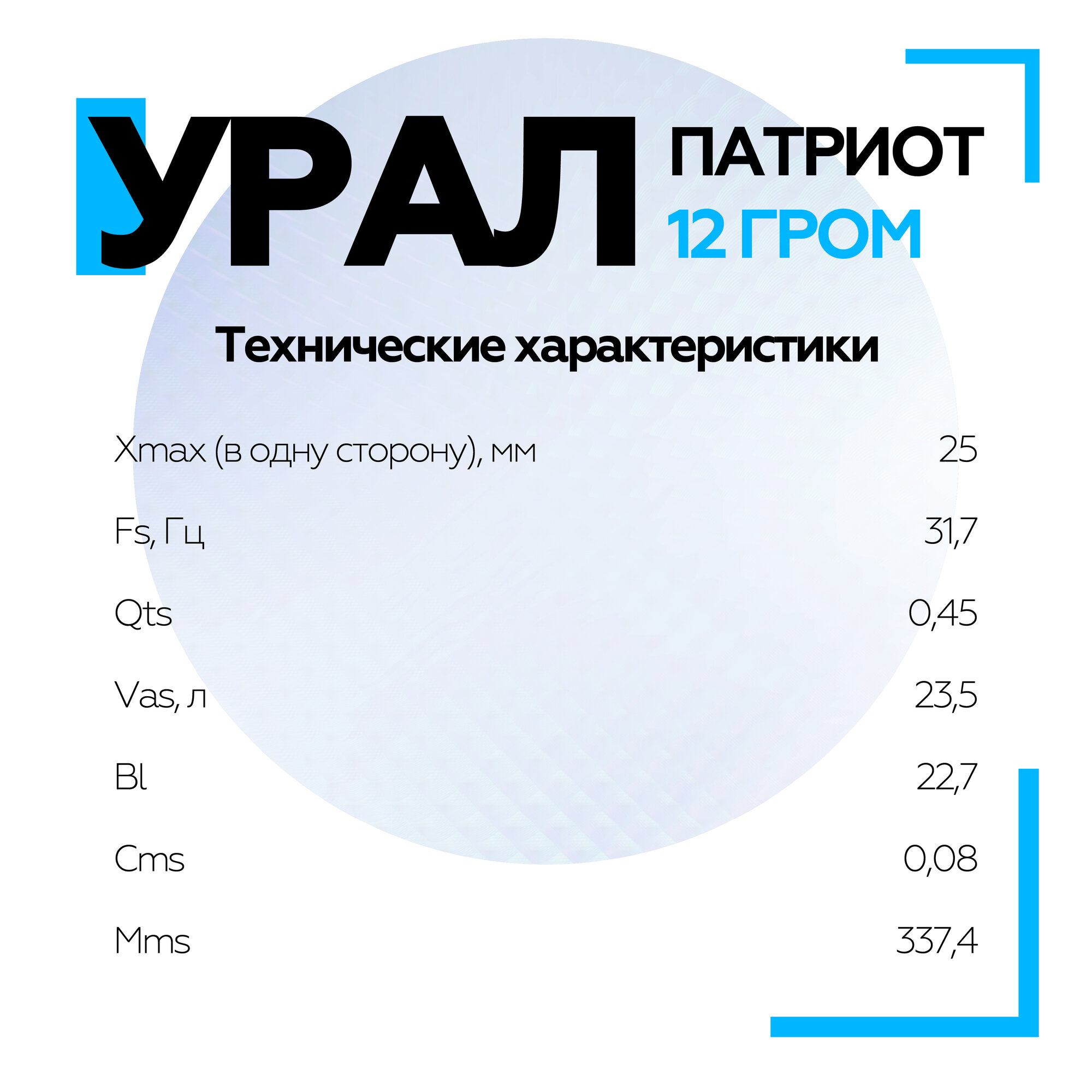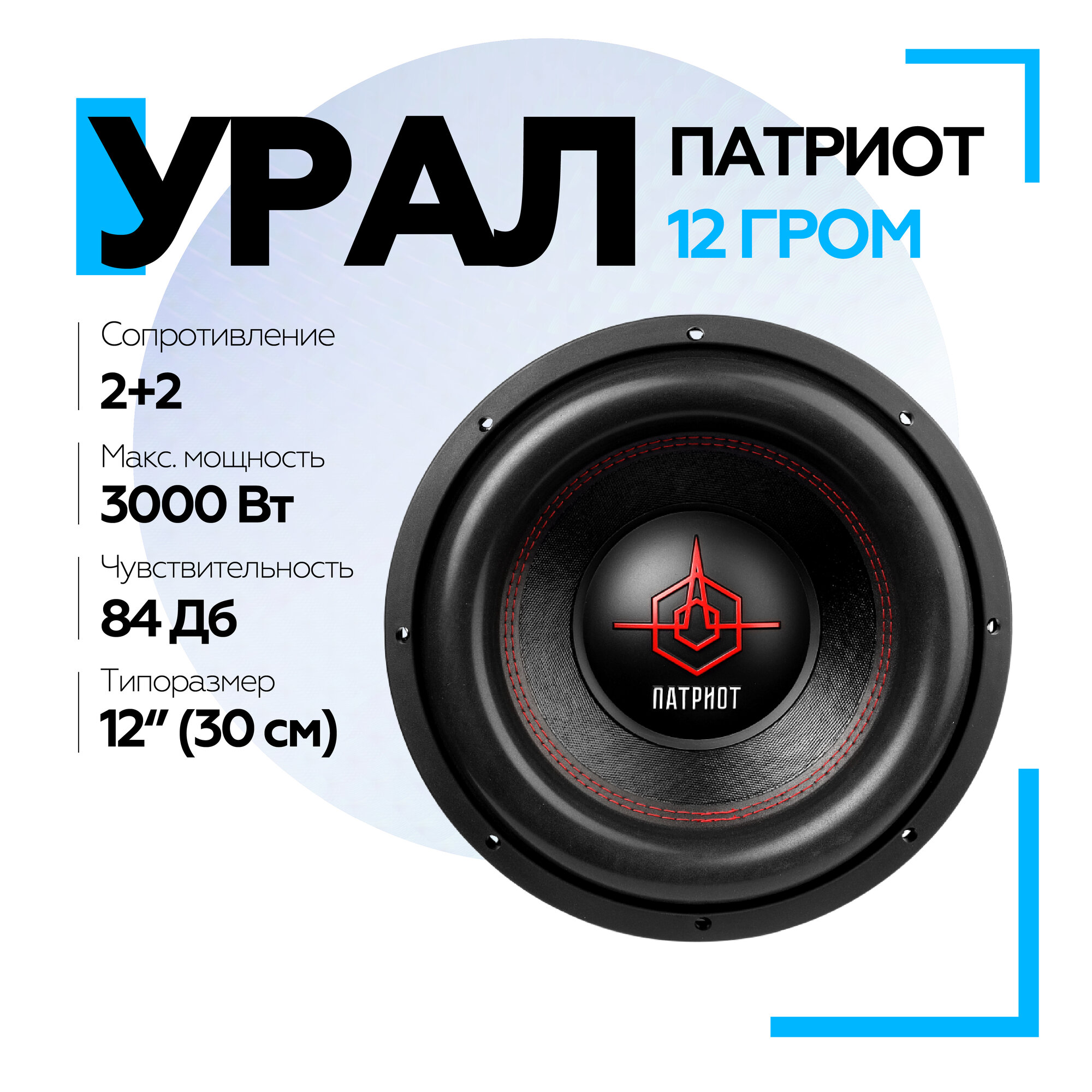 Пассивный автомобильный сабвуфер урал Патриот 12 Гром, 3000Вт, 84дБ, 4Ом, 12 дюймов (30 см)