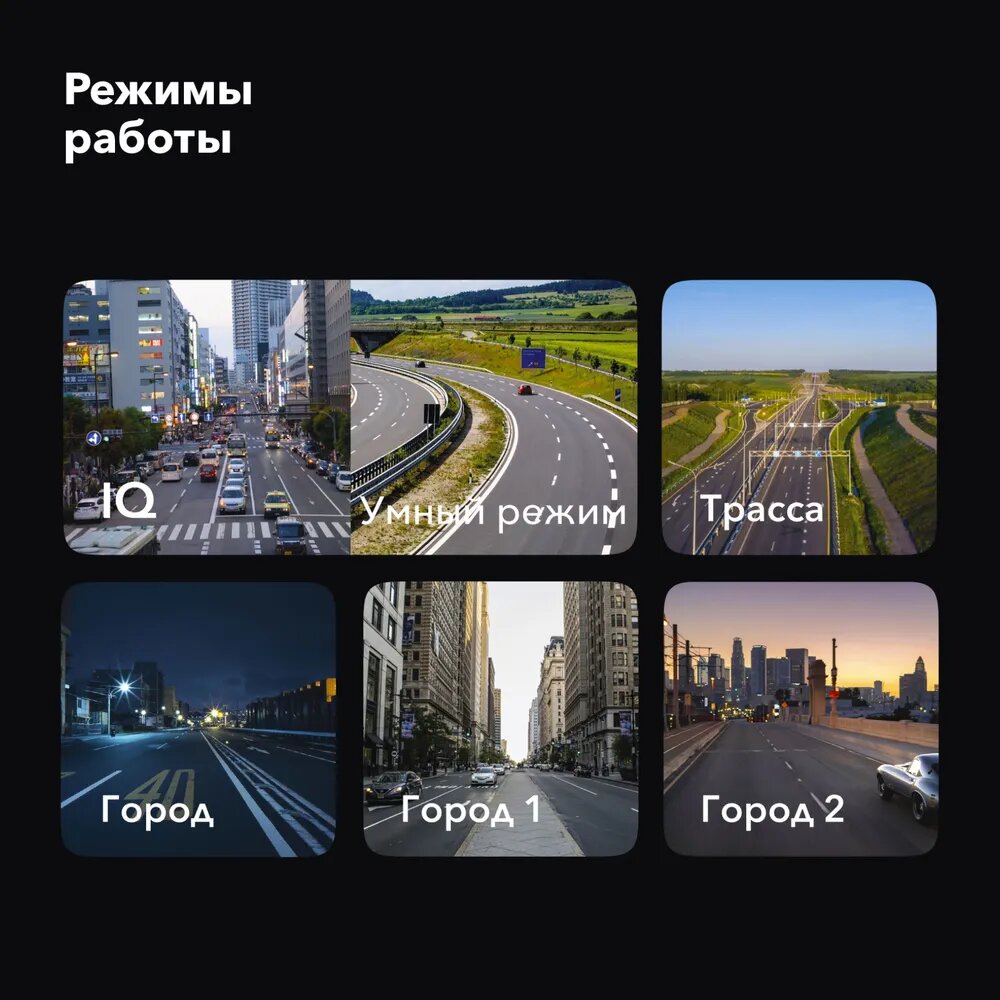 Множество режимов работы, но больше всего мне приглянулся режим «подпись IQ», включающий в себя сигнатурный режим плюс интеллектуальную обработку данных. На нём я катался по разным городам и ложных срабатываний почти не было. Также в комплекте идёт удобное крепление с шарниром, позволяющий поворачиваться камеру в сторону полиции, когда они останавливают авто.