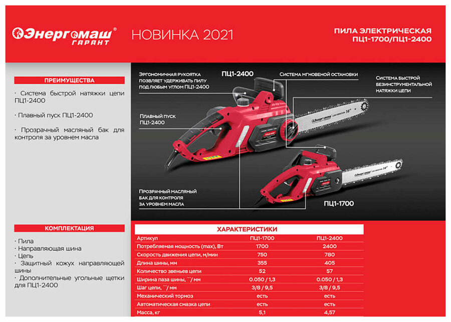 Пила цепная электрическая Энергомаш гарант ПЦ1-1700, 1700 Вт