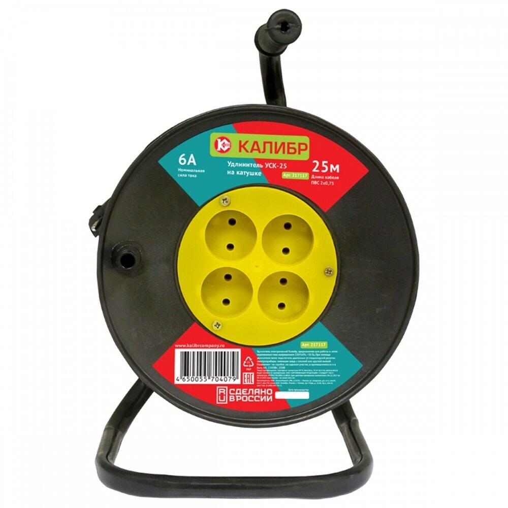 Удлинитель на катушке Калибр УСК-25 (2х0,75), 25 м, 6 А, 1300 Вт