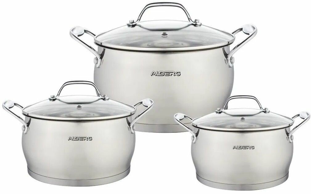 Набор кастрюль ALBERG AL-2005 6 предметов, 2.6л/3.7л/6.2л, нержавеющая сталь, индукция, стеклянные крышки
