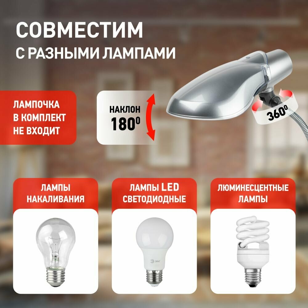 СохранитьЛампа настольная E27 офисная ЭРА NE-301-E27-15W-S лофт, ретро, серебристый интересное: