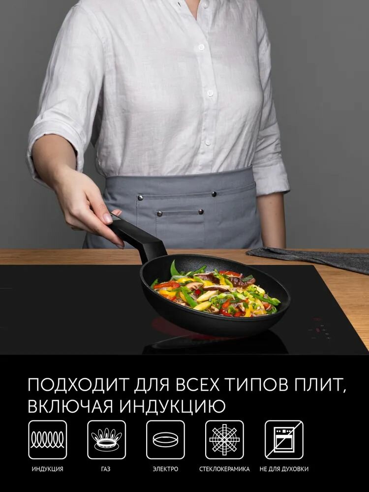 | Дополнительная информация | материал ручки: бакелит с силиконовым покрытием; 3-х слойное антипригарное покрытие с добавлением мраморной крошки MARBLE+ |
