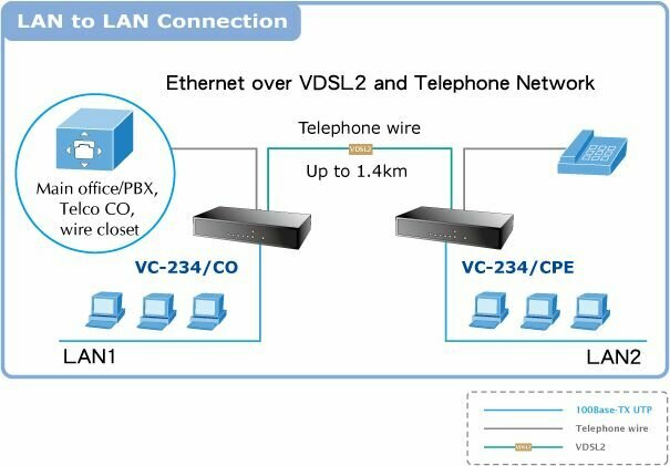 VC-234 конвертер Ethernet в Vdsl2, внешний БП VC-234 100/100 Mbps Ethernet (4-Port Lan) to VDSL2 Bri .