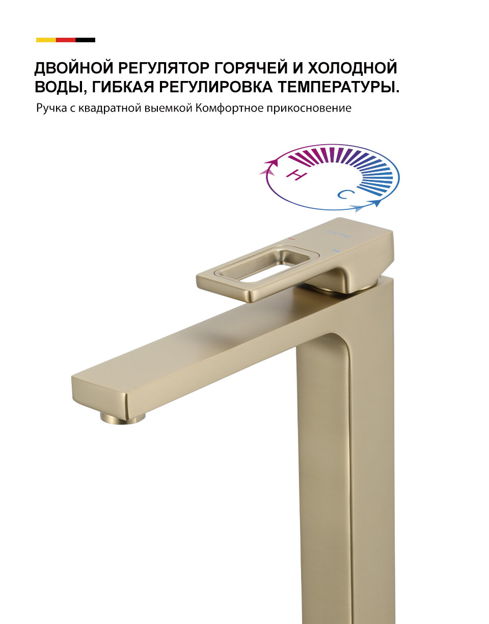 СохранитьСмеситель для раковины высокий Gappo G1017-32 латунь, золотой сатин интересное: