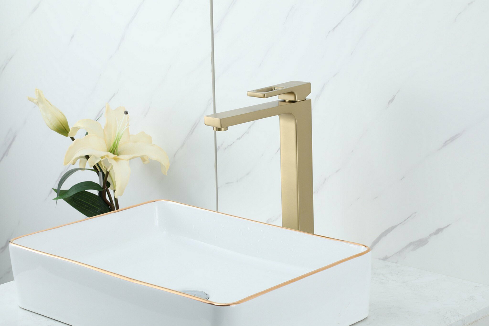 Купить Смеситель для раковины высокий Gappo G1017-32 латунь, золотой сатин