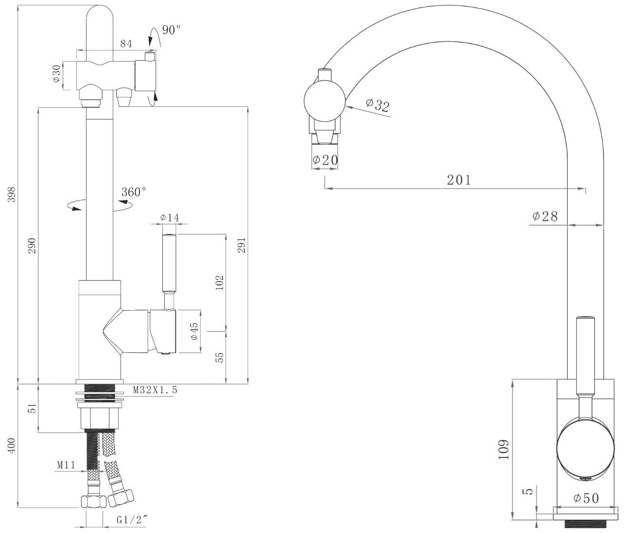 Смеситель для кухни под фильтр Seaman Barcelone SSL-5226 Gun Light Светлая оружейная сталь
