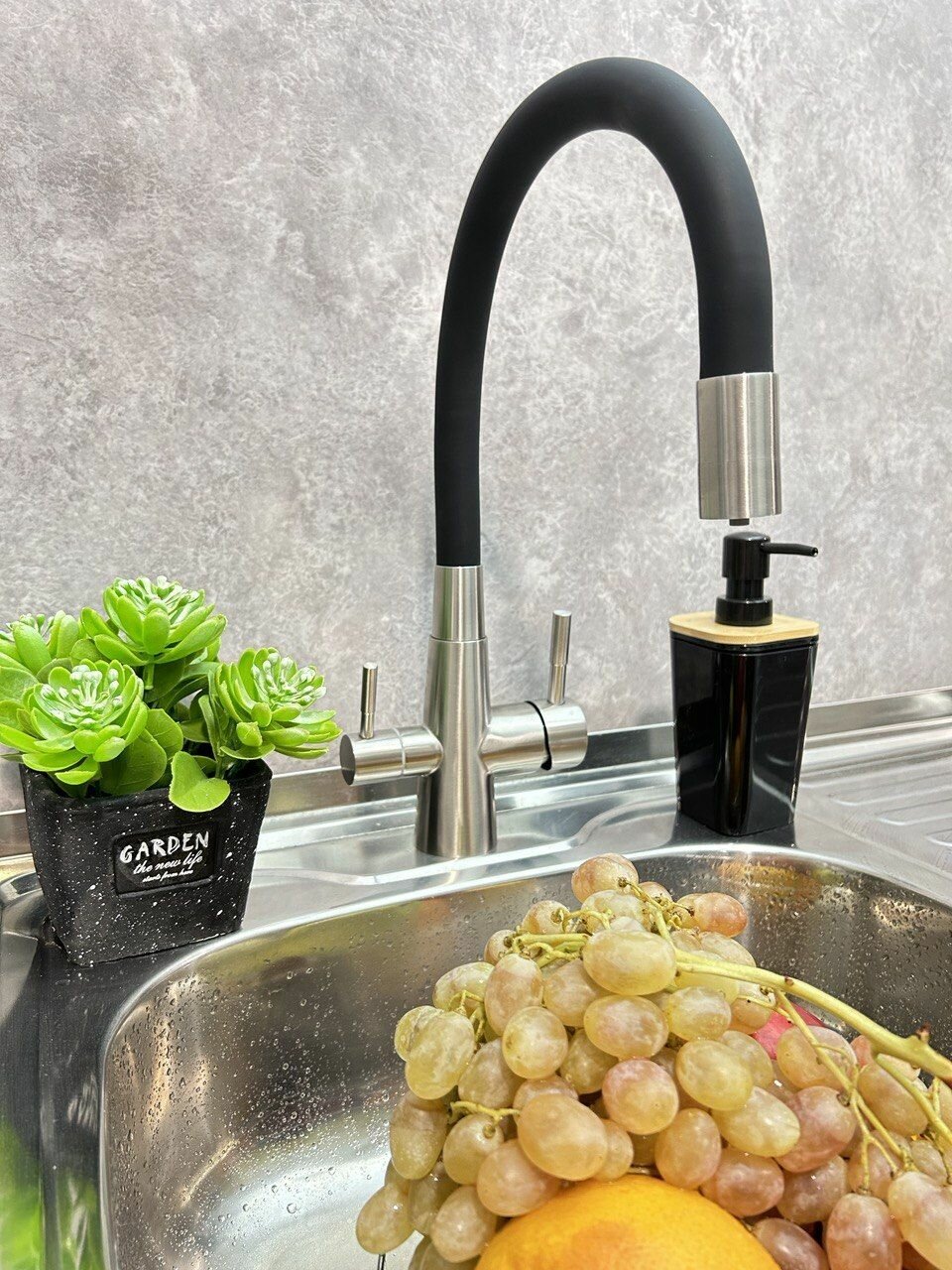 Смеситель для кухни с гибким изливом и подключением к фильтру с питьевой водой Hansen 15180P Хром + Серый