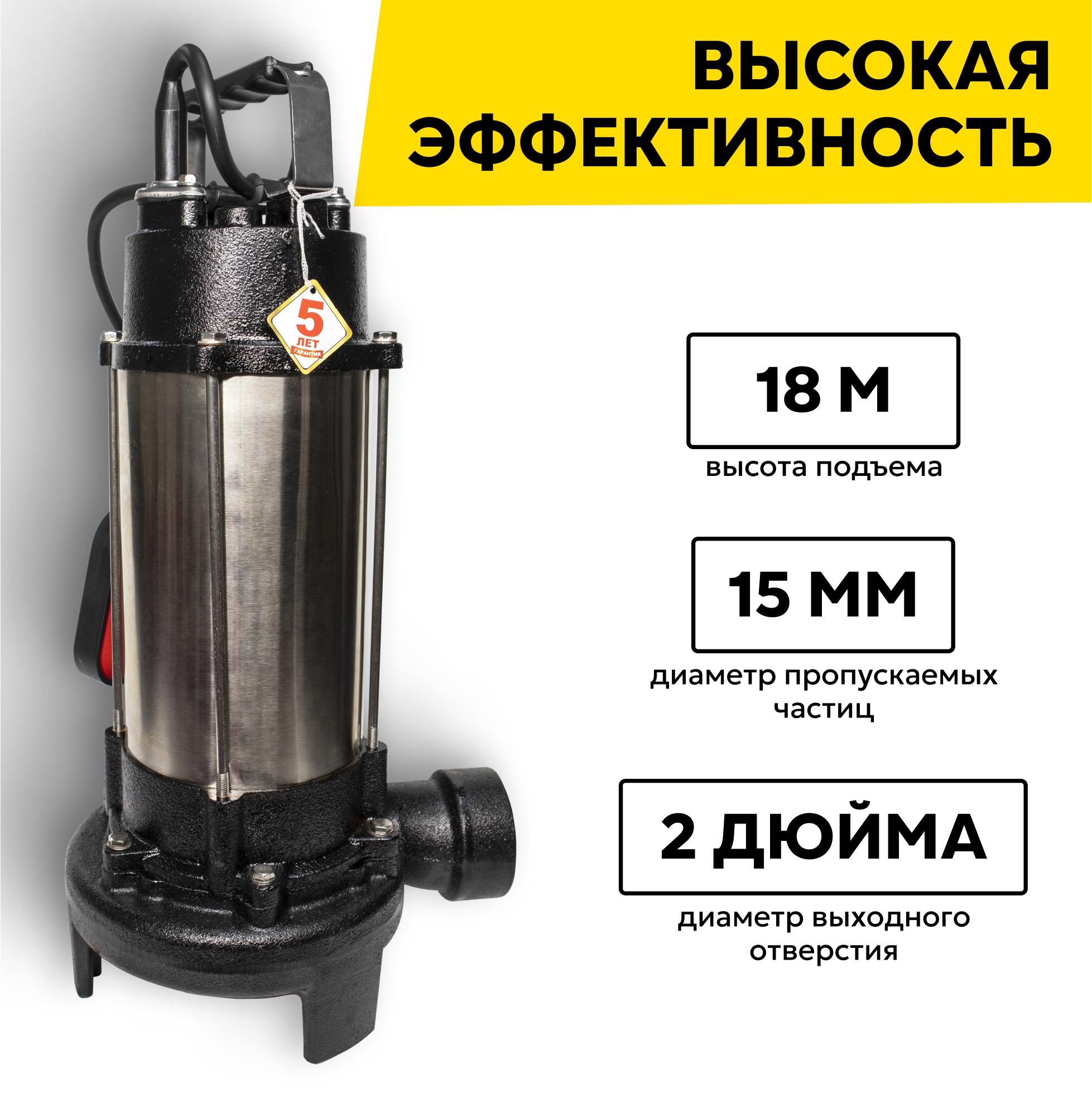Фекальный насос Ресанта НФ-20000, 450 Вт, высота подъема – 14.5 м, 20000 л/час, 2”