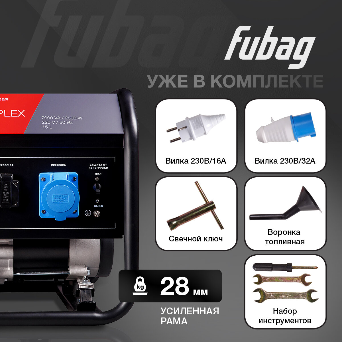 Бензиновый генератор Fubag BS 3500 Duplex объем двигателя 212 см³,