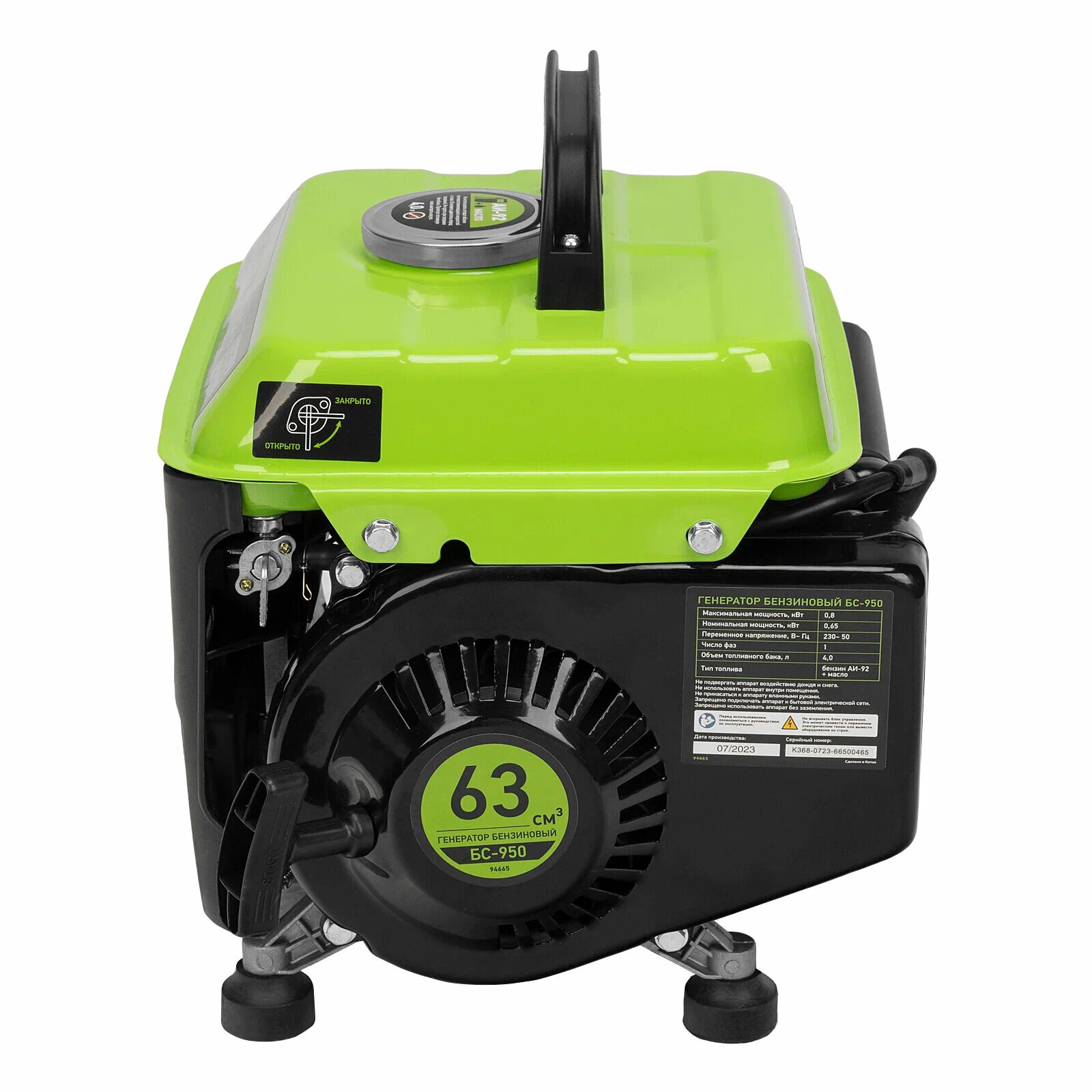 Генератор бензиновый БС-950, 0,8 кВт, 230 В, 2-х такт., 4 л, ручной стартер// Сибртех 94665