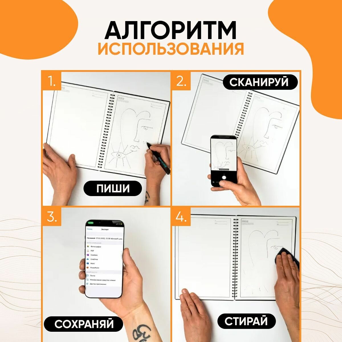 Многоразовый умный Блокнот / Скетчбук / Блокнот творческий / Для записей / Вечный блокнот