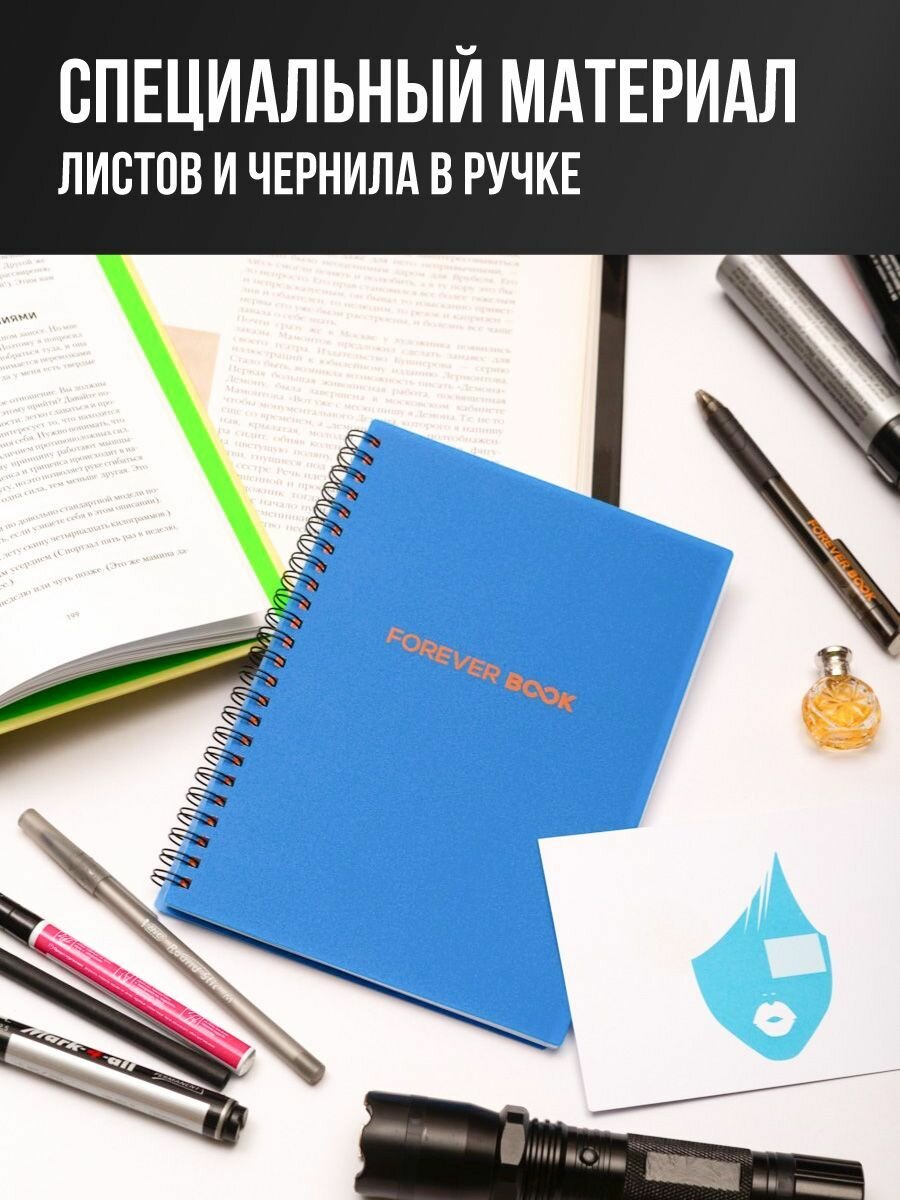 Многоразовый вечный блокнот для записей на кольцах с ручкой / Скетчбук творческий синий