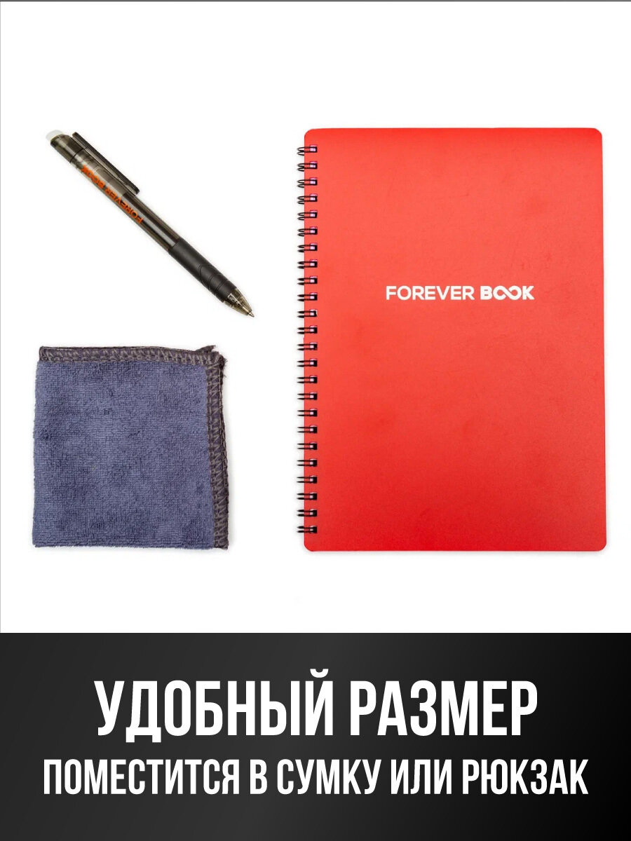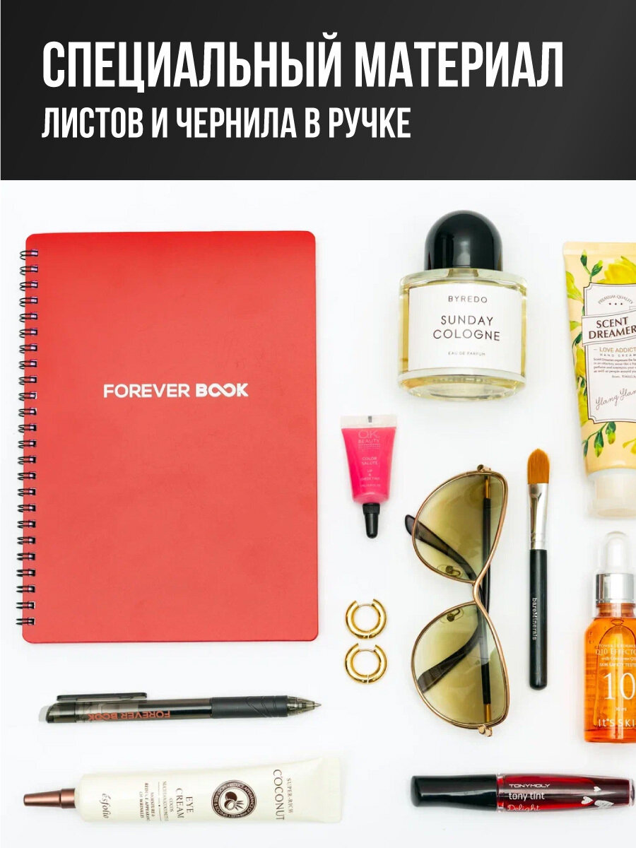 Многоразовый вечный блокнот для записей на кольцах с ручкой / Скетчбук творческий красный