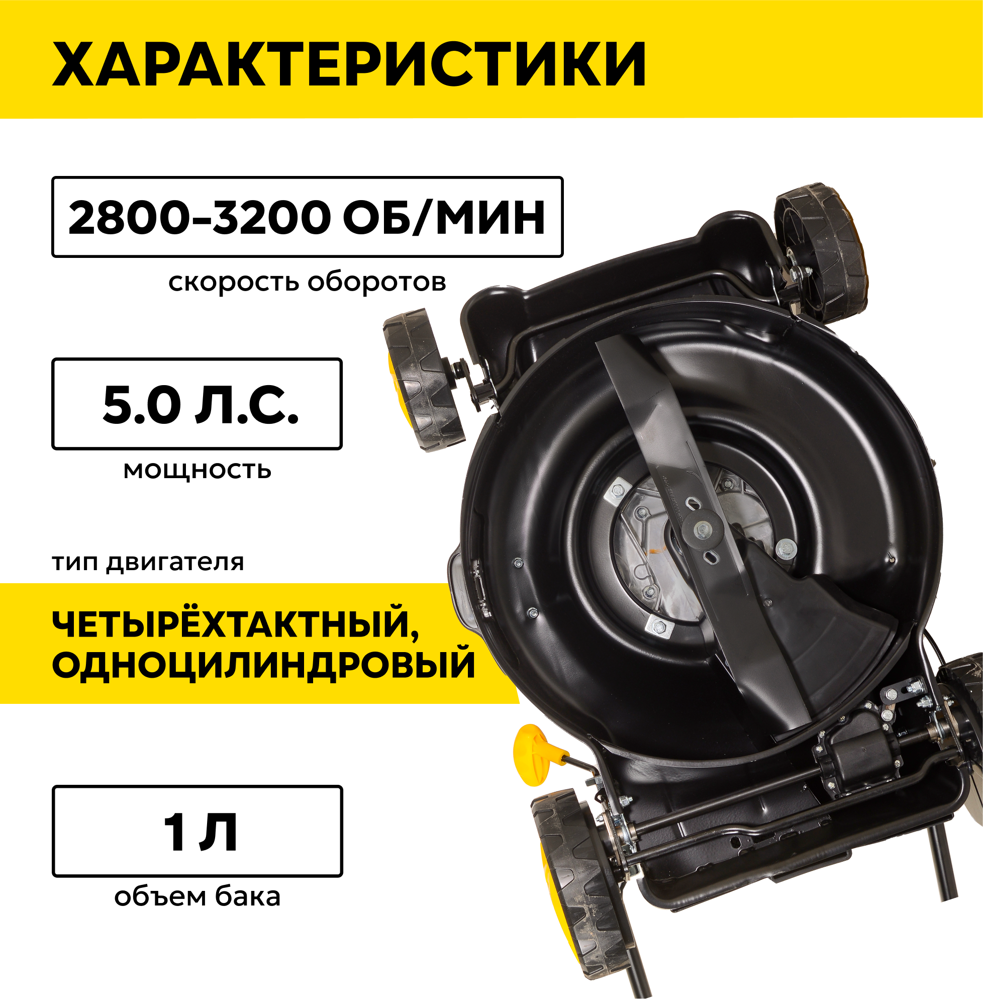 Мощная, низкая стоимость, экономичная, производительная, травосборник, регулировка высоты среза, мульчирование.