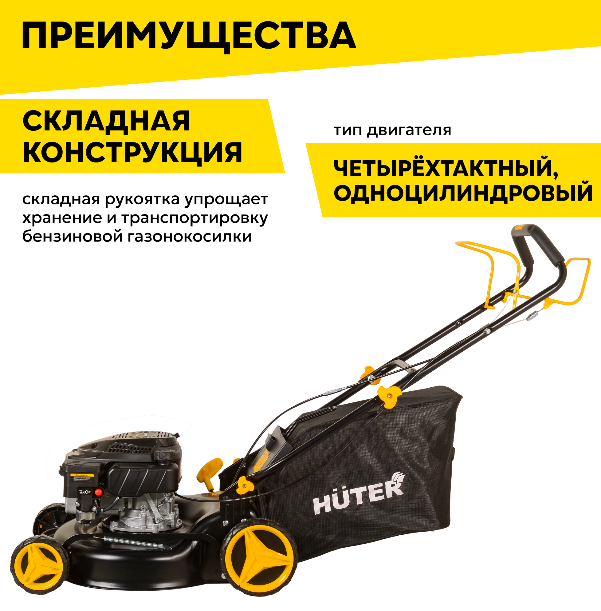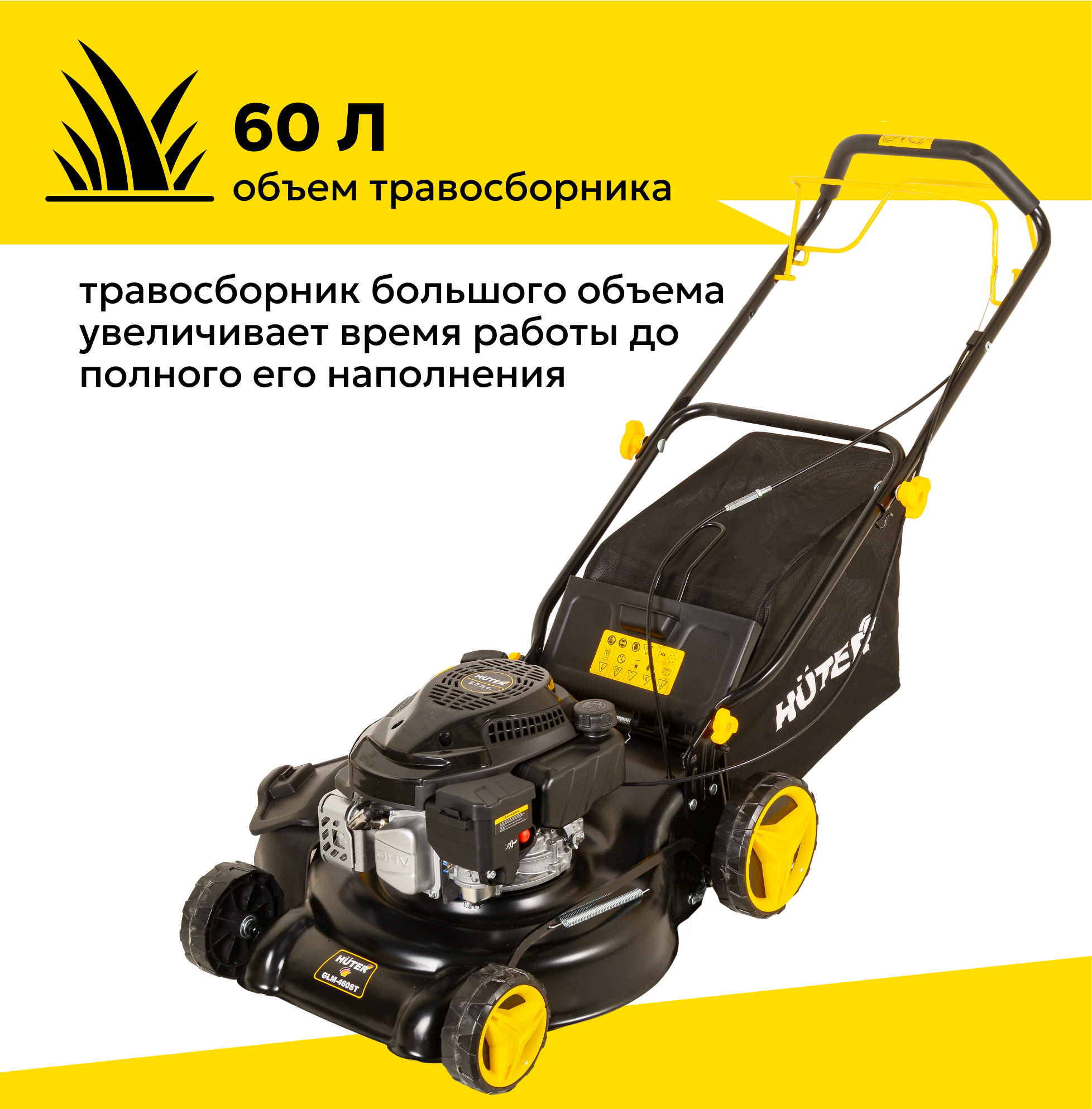Купить Бензиновая газонокосилка HUTER GLM-460ST, 5 л. с. травосборник 60л, ширина скоса 46см