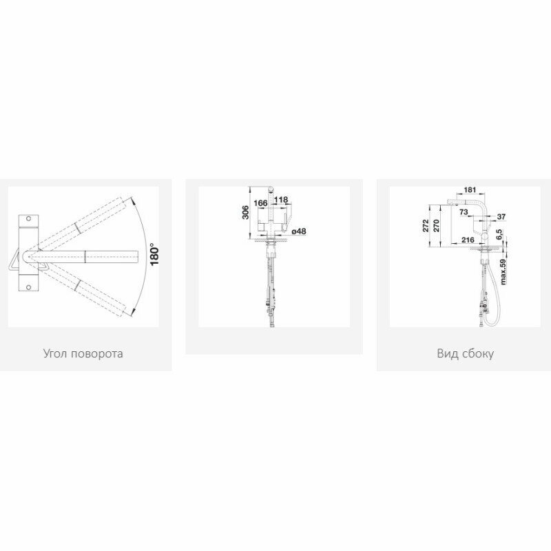 | Длина излива | 216 мм |