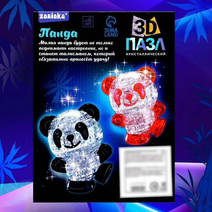 Купить 3D пазл «Панда», кристаллический, 53 детали, световой эффект, цвета микс, 121852