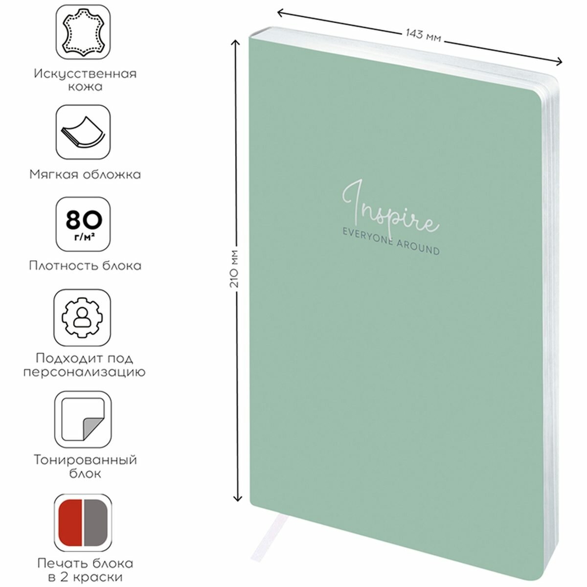 Ежедневник Greenwich Line Vision. Trendy mint недатированный, искусственная кожа, А5, 136 листов, светло-зеленый, цвет бумаги тонированный