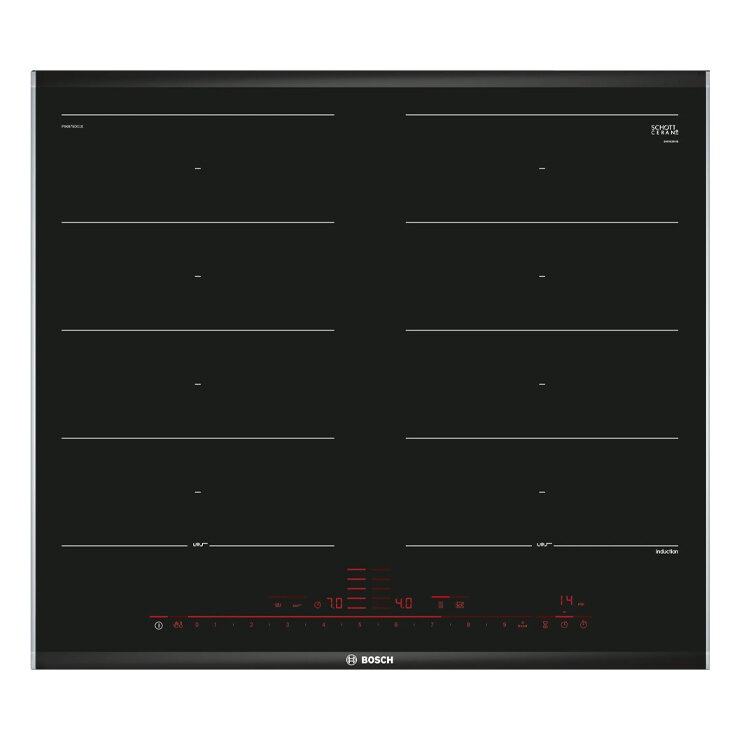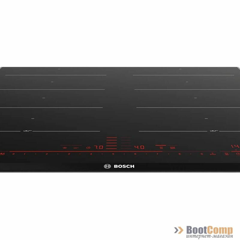 BOSCH Встраиваемая индукционная панель BOSCH Индукционная, Home Connect Serie 8, cтеклокерамика, черная, ширина 60см, 4 индукционных зоны нагрева, FlexInduction, сенсорное управление DirectSelect, функции HomeConnect, таймер, индикация остаточного тепла,