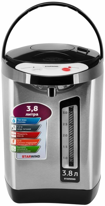 Термопот Starwind STP3400, 3,8 л, 800 Вт, серебристый/черный интересное: