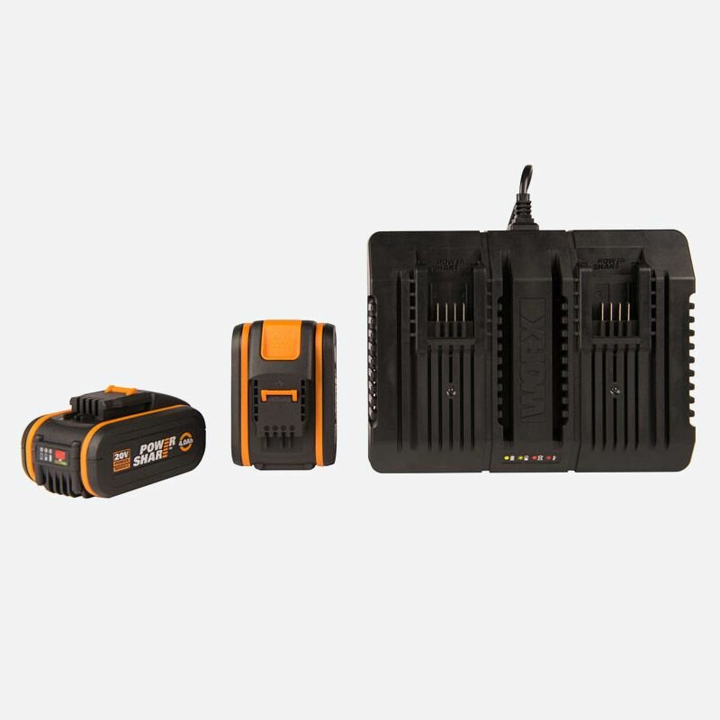 Комплект WORX WA3611 20V: 2 аккумулятора 4Ач и двойное зарядное устройство 2А