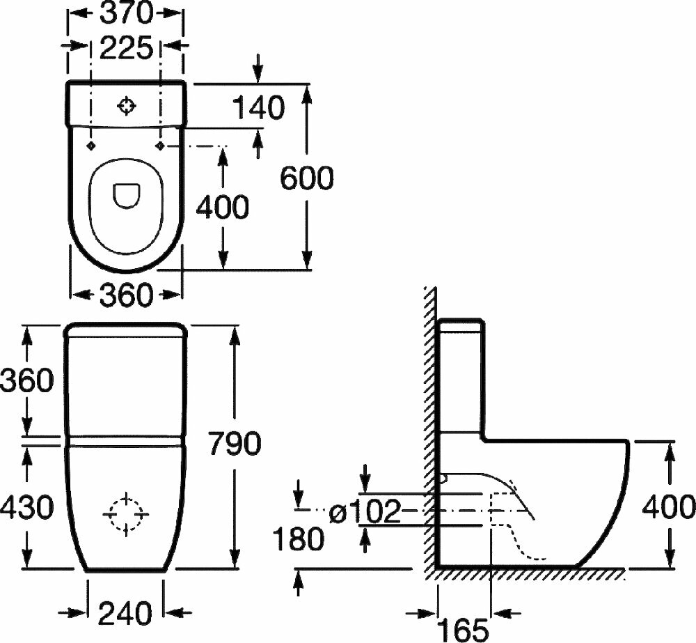 Roca MERIDIAN-N Унитаз компакт с универсальным выпуском (370х600х790) белый 342248000+341242000